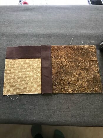 Two main block sections pinned and ready to be stitched. I tried to mix them up to give good fabric variation in each block. Although not perfect, I am happy with final selection.