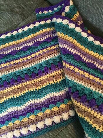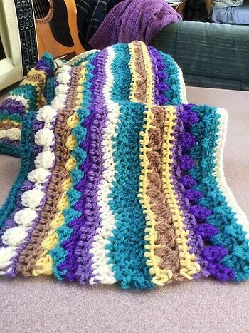 My daughter at RavenAndZoey, brought me some giant balls of yarn in amazing colours. I have always wanted to do a multi stitch afghan, so searched youtube and found some great ideas.