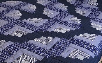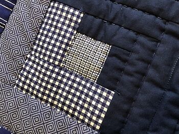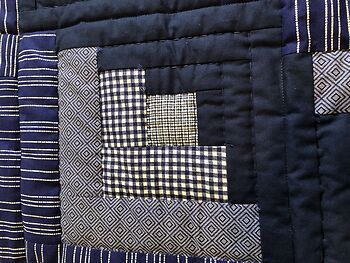 I have always liked the look of this design so when I had some extra fabric and time I put this together. The solid navy gives a definite curve to the blocks. Hand quilted with large stitch quilting finished the look.